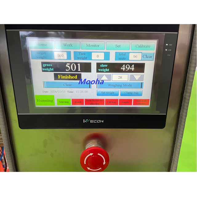4. La báscula eléctrica o la celda de carga se conectan con la pantalla táctil para obtener información sobre el peso, la máquina se puede utilizar por peso o por volumen según las necesidades del usuario.