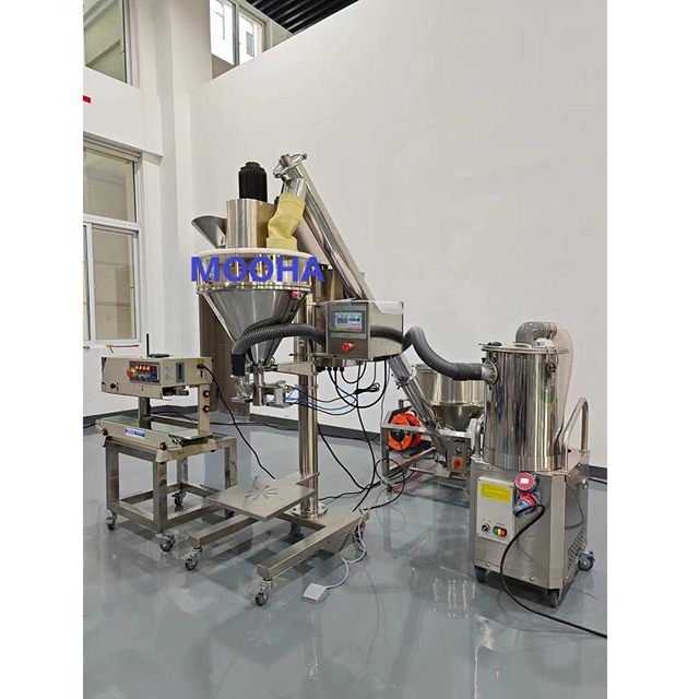 1.Máquina llenadora de bolsas de polvo/harina. El material es acero inoxidable 304 (partes táctiles de los alimentos), cumple con el estándar GMP.