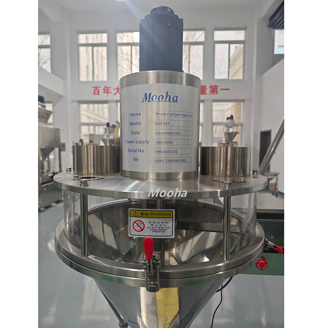 1.Máquina llenadora de bolsas de polvo/harina. El material es acero inoxidable 304 (partes táctiles de los alimentos), cumple con el estándar GMP.